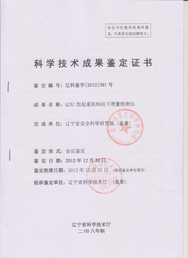 發(fā)證單位:遼寧省科學(xué)技術(shù)廳