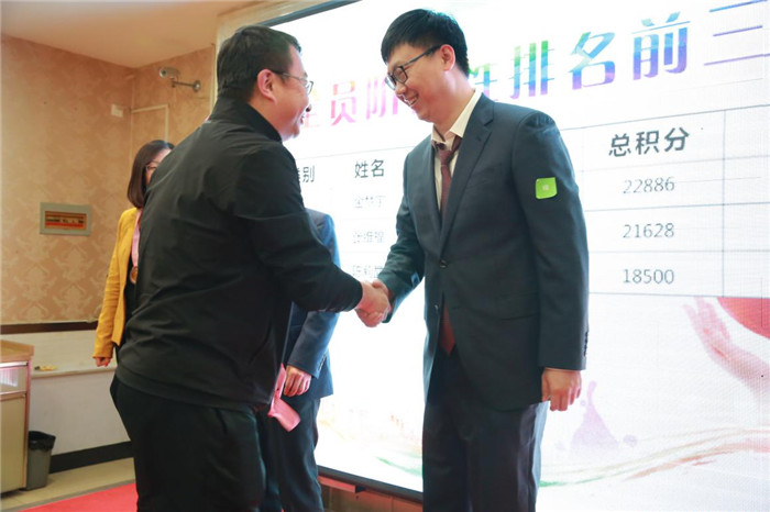 隨后,由人力資源部部長楊萍公布階段性積分的排名,由蘆永軍總經(jīng)理為積分排名三甲的員工頒發(fā)獎牌以及按照各部門積分排名情況為員工頒發(fā)獎品。